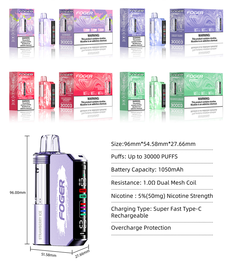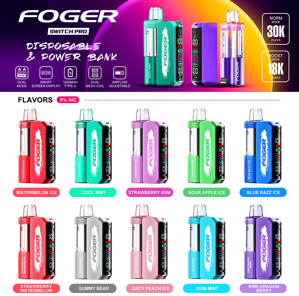 Get ready to meet the new member of the Foger Clear Tank family ! The Foger Switch Pro is a new and unique disposable with attached power bank. What makes the Switch Pro Unique is that it’s a modular disposable that comes in two parts: a small 200mAh disposable pod and an 850mAh Magnetized charging dock functioning as a pass-thru charge.  The Innovative design makes Switch Pro more cost effective, more eco-friendly. After the flavor runs out, you just need to buy a solo unit to go with your charging dock.