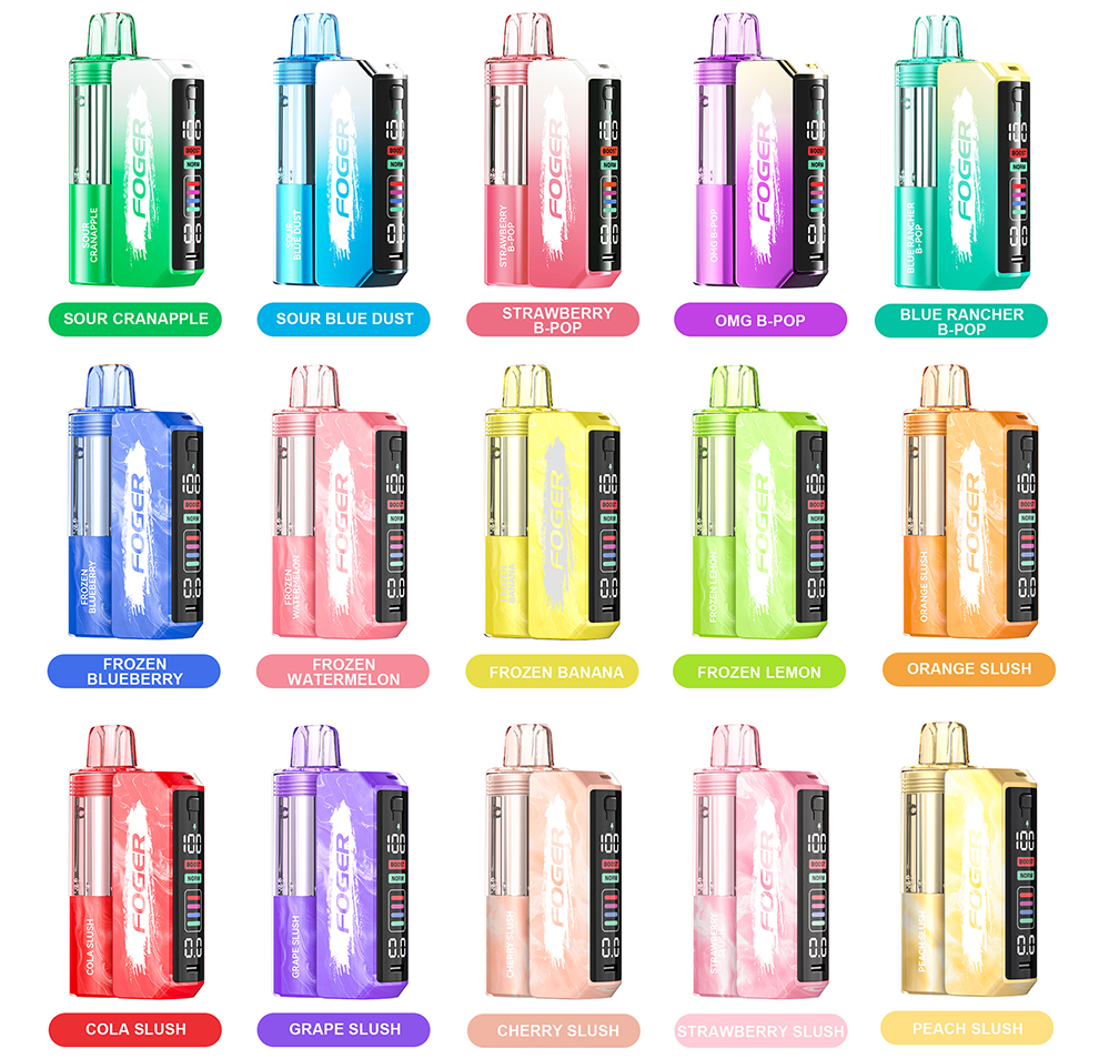 Flavors :  Watermelon Ice, Cool Mint, Strawberry Kiwi, Sour Apple Ice, Blue Razz Ice,  Strawberry Watermelon,  Gummy bear, Juicy Peach Ice, Gum Mint, Kiwi Dragon Berry, Cherry Lemon, Strawberry Banana, Pineapple Coconut Ice, Blueberry Watermelon, Strawberry Ice, Coffee, Mexico Mango, Miami Mint, Strawberry Cupcake, White Gummy, Tobacco, Watermelon Bubble Gum, Icy Mint, Clear, Sour Fcuking Fab, Sour Gush, Sour Cranapple, Sour Blue Dust, Strawberry B-POP, OMG B-POP, Blue Rancher B-POP,