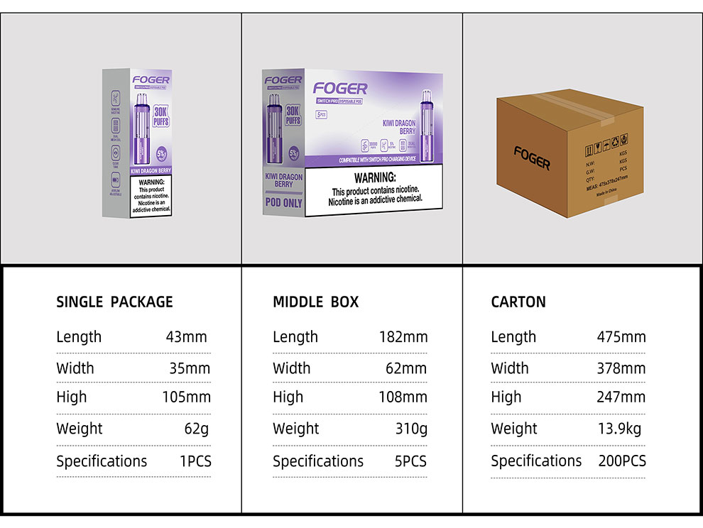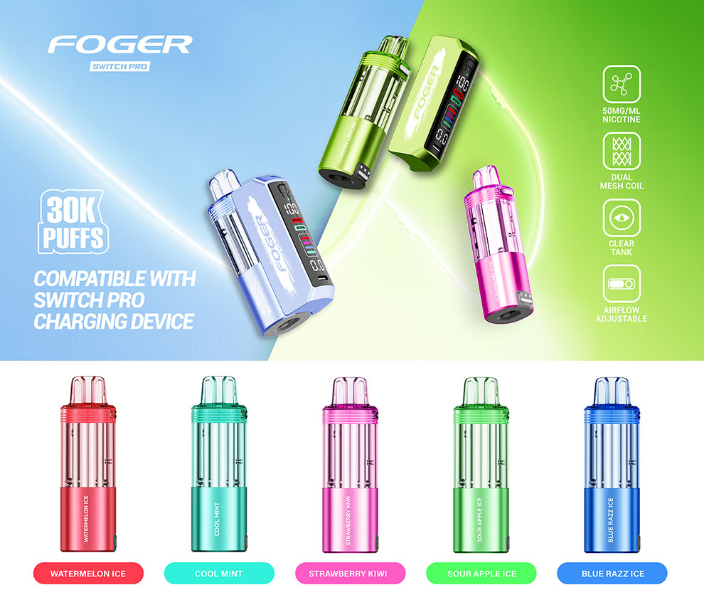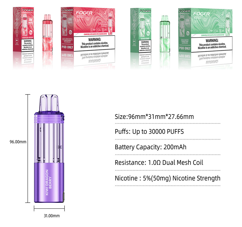 Finally, the long-awaited Foger Switch Pro disposable pod pack is here. This innovative disposable pod is the perfect pairing for your Foger Switch Pro power bank. With a 200mAh rechargeable battery, each Foger Switch Pro disposable pod provides up to 30000 puffs when charged via a Switch Pro power bank. After the flavor runs out, you just need to buy a solo unit to go with your charging dock, which makes Switch Pro more cost effective, more eco-friendly.